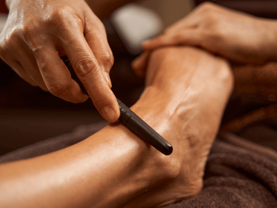 Een ontspannende massage die de doorbloeding stimuleert, spanning verlicht en zorgt voor een licht en ontspannen gevoel in de benen.